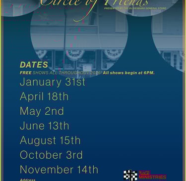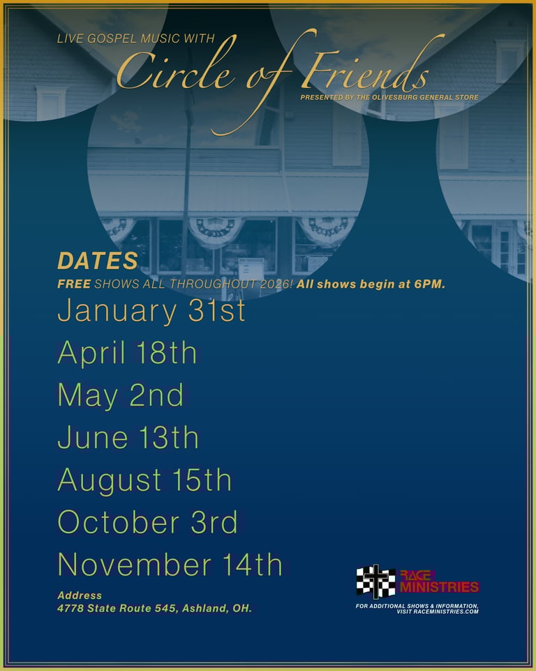 Upcoming live music from Circle of Friends & Race Ministries. You can tap each image to enlarge, then press and hold to save to your phone.