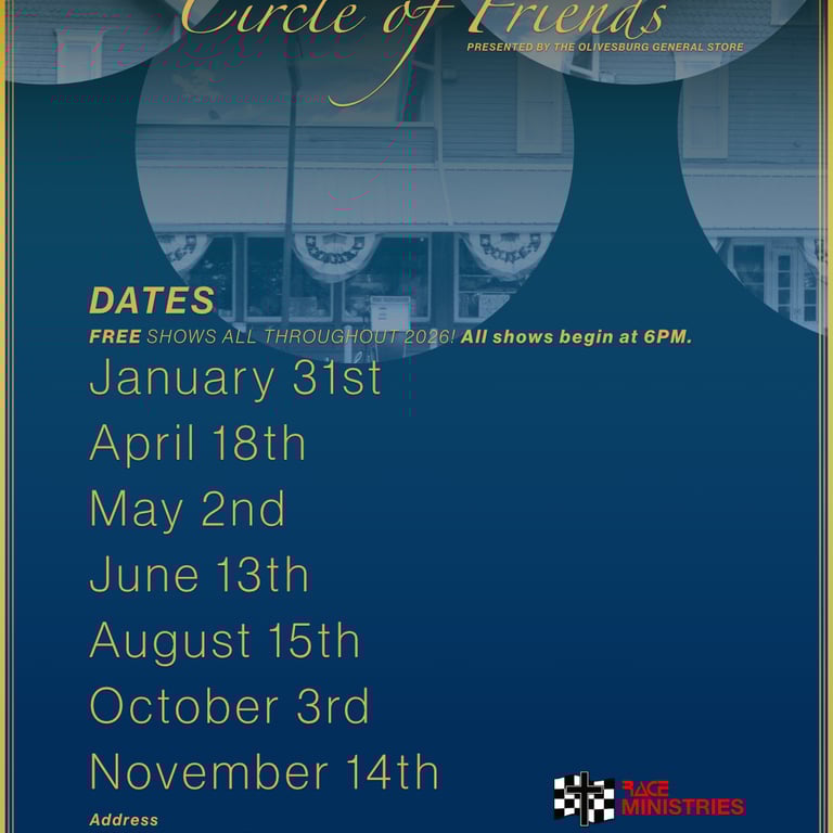 Upcoming live music from Circle of Friends & Race Ministries. You can tap each image to enlarge, then press and hold to save to your phone.